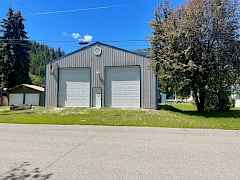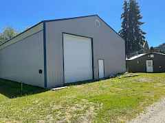 Super Shop on 2 lots! 2400 sq ft 40x60 shop with 3 sixteen ft doors , 400amp power, concrete floors, insulated, storage racks, water and sewer available , alley access, Metaline Park has boat launch to Pend Oreille River, NFS trial system near by, 4 seasons of fun, Adjoining Home and 3 lots available buy both for $234,500.