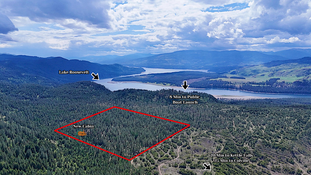 If you are looking for a place to enjoy the great outdoors this 40+ acres is level, well timbered and has the greatest 12x24 getaway dry cabin that has a loft and a 12x24 lean to that includes a concrete floor. There are about 6 acres around the cabin and a wildlife viewing area that have been treated for wildfire resilience and forest health to create a natural park like setting. The property has a great location, about 8 minutes from a boat launch on Lake Roosevelt, 14 miles to Kettle Falls & 15 miles to Colville. Add your finishing touches to the cabin to make it your special getaway! The access easement off the dirt/gravel county road is good for up to 4 parcel owners if you want to consider splitting up the 40 acres.