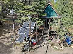 Off grid cabin on 10 heavily forested acres with Camp Creek skirting a portion of the property. 12 x 24 Cabin has wood stove and storage. Super private and quiet.