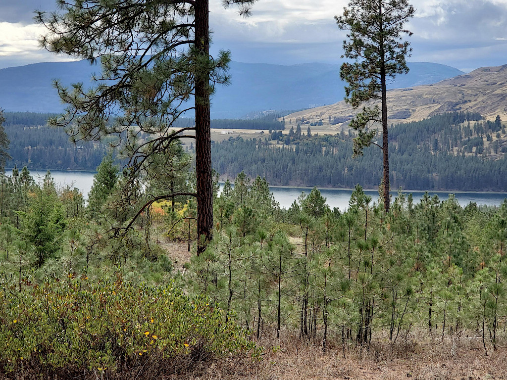 60 timbered acres with some views overlooking Lake Roosevelt. Drilled well and lots of building sites to choose from.