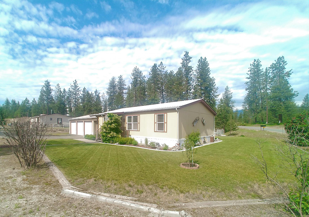 Well Maintained Home on .86 acres Newer metal roof with snow stops installed. Easy open flow 3 bed, 2 bath manufactured home, landscaped yard with fenced garden, fenced strawberry patch, rhubarb, horseradish, black berries, apple, pear and cherry trees . sprinkler system around the house (not on the lower level) perennial flower beds Nice large 3 car garage , RV parking and close to town and all the amenities. Back yard even has some woods to explore.