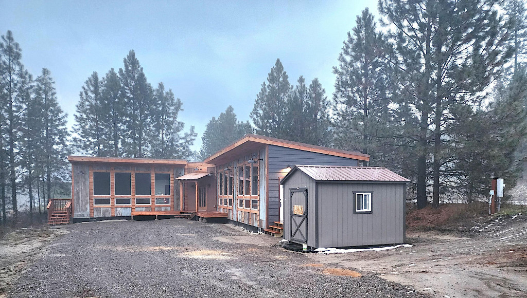Majestic Home on a .71-acre lot. 2 bedrooms 2 bathroom with open kitchen / living room concept. Rustic metal siding and pine trim and accents. Beautiful tile showers with custom designed cabinetry. Kitchen has open cupboards with unique features. Large shed is included, and the property was recently graded. Large picture windows bring in the sunlight and moonlight. This is worth taking a look at. Seller willing to contribute to closing cost on acceptable offer. Photos are before tenant moved in.