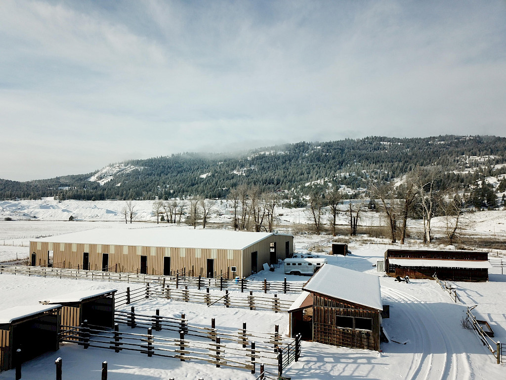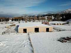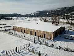 What a spectacular equestrian property! One of, if not the largest indoor riding arena's in the area. 15680 sq.ft. lighted arena has 17 individual stalls w/exterior doors & several tack rooms. The outdoor arena has a concession booth, perfect to hosting events. There's 7 additional outbuildings all with horses & farm animals in mind. The property and pasture are fenced and cross fenced and the creek that's lined with mature cottonwoods runs through it. Easy year around access for trucks and trailers off the hwy. Older manufacture home is enclosed with a large snow roof. This property has too much to list. Come take a look!