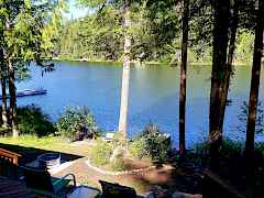 Here's the perfect Lake Cabin home with low bank waterfront on serene Black Lake! This 2BR/1.5BA 1200 sq ft updated home features large kitchen windows w/beautiful views of the lake. The modern kitchen has a gas cook top, granite countertops, wood cabinets, kitchen island and lots of storage. A wood stove in the living room takes the edge off cool evenings. Look out on the ''no wake'' Lake from the lower room w/large windows and access the recently replaced deck. Situated in the middle of miles of forest and nearby Twin Lakes, this is a rare find.