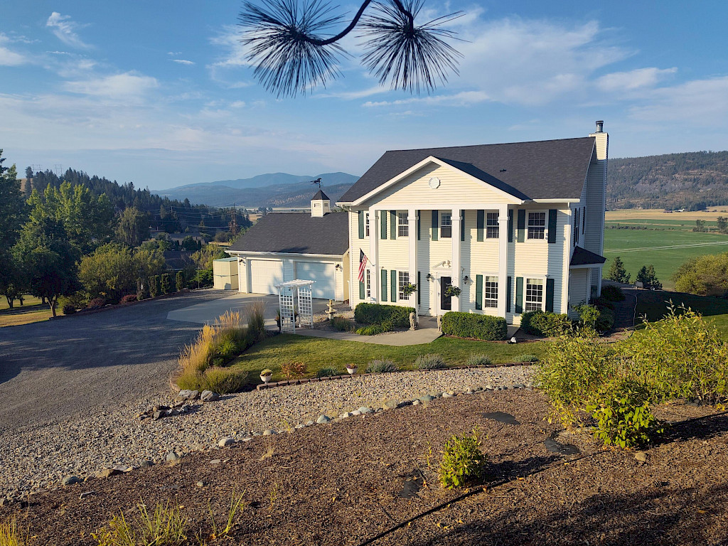 Custom built southern colonial home on 2.26 acres overlooking Colville Valley & located in the county, just 1 mile from the Colville city limits. Southwest exposure provides lots of natural light & expansive views sets it apart. Formal LR and dining rooms make this home perfect for gatherings or entertaining friends. Newly remodeled kitchen affords KraftMaid cabinetry w/great storage space & full pantry. Granite countertops, GE Profile appliances, eating bar & more. Family room off the kitchen has bay with informal dining space. Primary bdrm with custom tile ensuite. 3 additional bedrooms and a full bath finishes out the floor. New full-width rear deck with Gazebo to enjoy the views & make outside entertaining easy. Flooring updated in 2019 w/hardwood and new carpet throughout the home.