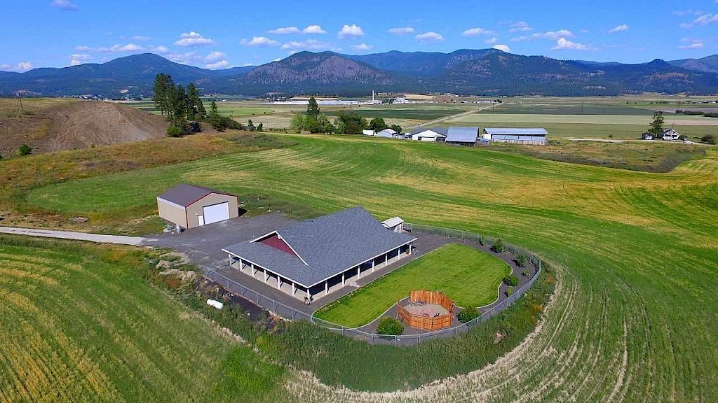 Quality built rambler on 34 acres- 3 bed 2.5 bath with 1440 sq. ft. shop. The home has a new super efficient Mitsubishi PTAK heating and air conditioning system thru out. Kitchen offers large dining area, island cooking, walk in pantry. beautiful hickory cabinets. Home offers R- 50 in ceiling , R. 40 in floors. Approx. 1800 sq. ft. of covered porch that goes around entire home. Established hay ground.