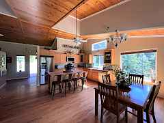 What a remarkable property. The perfect set-up and location. Very classy one level frame built home with light bright open kitchen, dining and living room. The large primary bedroom has huge sliding glass doors that lead to the covered porch and the primary bath is spacious with a soothing color pallet. The utility room is equally spacious and bright with wonderful storage and folding counter. Full length covered porch and patio area make a great place to enjoy the serenity of this very private and fully fenced back yard. Huge 4-bay shop, fenced area for horses as well as some pasture. Totally private & nestled in the trees up against National Forest land. Easy year around access. This is a must see