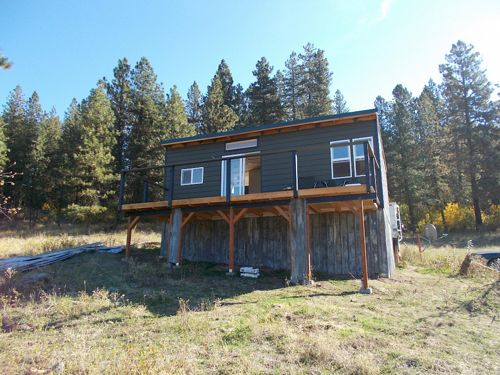 Very nice ''tiny house'' on post and pier foundation. 23.44 acres with nice mix of pasture and trees. Two springs that could be developed Property fenced on 3 sides.. Cabin is rustic but modern with power, water and septic. Beautiful full length deck with spectacular views of meadow and mountains. Large cottonwood and aspen dominate the meadow area. Cabin has wood stove, propane wall unit and electric heat sources. On demand propane hot water Owner is leaving RV camper that fits 3/4 ton pickup or could be extra space for visitors.. Property borders large timber holding on east side and CCT land to the south. Close to thousands of acres of national forest. Property is located within the CCT reservation.