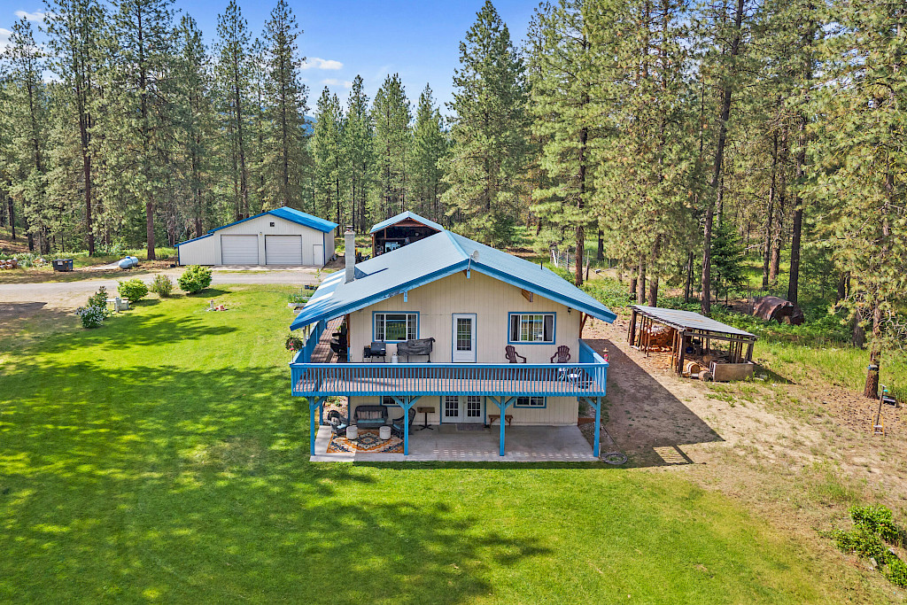 Check out this 3 Bed 2 Bath home on 10 Acres Open floor plan upstairs with large living, dining and large kitchen with island, Primary bedroom and bath. Walkout daylight basement has 2 bedrooms, 1 bathroom, office space and large laundry room. There is a large deck and patio for entertaining with a limited view of the Kettle River. This home sits just about in the middle of 10 treed acres with a ton of privacy at the end of the road, There is a 2 car carport right off the home and 2 shops one is 48X30 and the other is 32x24. Home is wired for back up generator and has Irrigation rights to a community water system. This property is close to thousands of acres of Colville National Forest.