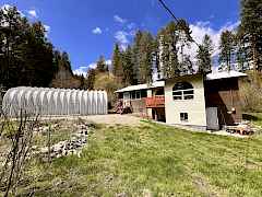 Fantastic setting for this creek side frame built home. This solid well built home has a fairly open floor plan with a partial unfinished basement with walkout entrance. Large picture windows provide natural light and pretty views of the property. The outside of the home has both wood and vinyl siding as well as wheelchair ramp. Strong flowing creek runs the length of the property. Quonset hut shop w/concrete floor as well as a bunker built of a 20' container with venting & composting toilet. 2nd bunker used as a root cellar w/power and venting. Large yard with fenced garden area and easy access. This home is close to both the Canadian border and the town of Curlew.