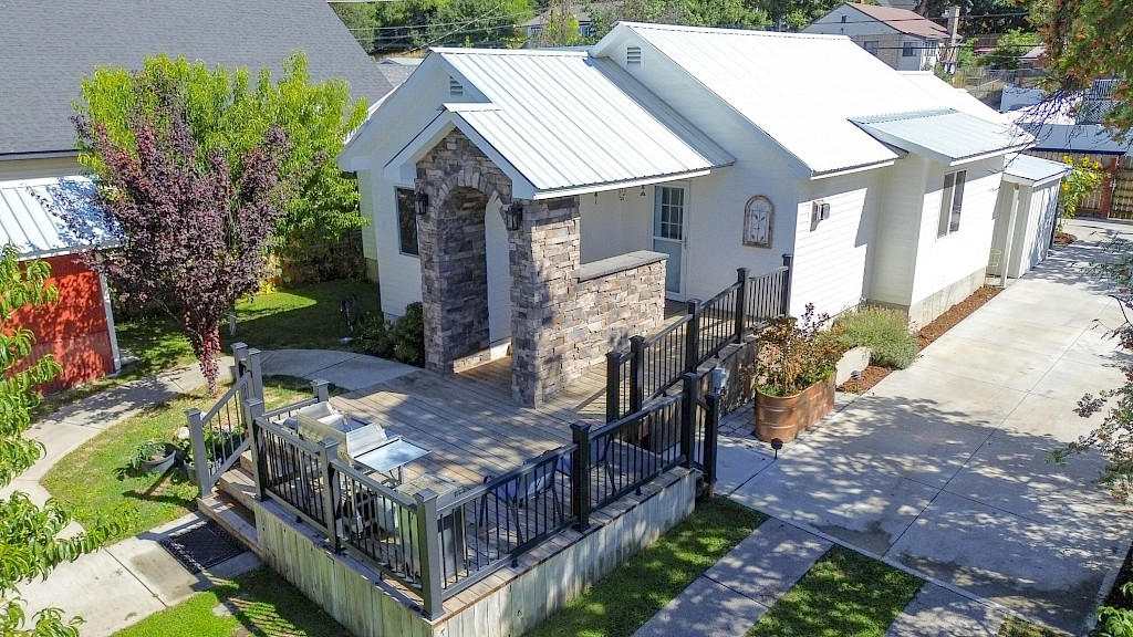 BEAUTIFUL COTTAGE HOME WITH GREAT CURB APPEAL! Custom Covered Brick Entry-Deck, Extensively, Home is completely Remodeled, Amazing Landscaping, Sets back off the Road for Privacy, Bright Open Floor Plan, Wood Flooring, A Cooks Dream Kitchen w/Dining area , Gas Fireplace, Cath Ceilings, Primary Bedroom w/lg closet, 2nd bedroom, Laundry Rm/ mud rm, One Level Living, Unfinished Basement w/lots of Storage, Large Fenced & Landscaped Yard, Fruit Trees- Plum, Apricot ,Apple, Peach & Cherries, Garden w/ Blueberries Black &, Gooseberries, Raspberry, Strawberries & Grapes, Roses & Annual Flowers, Det Garage/Shop w/ ft yard drive thru & alley access, Storage Shed, Chicken Coup, Outdoor storage rm, Yard is fully fenced and has concrete walkways, Private Back Deck set up for hot tub & More!
