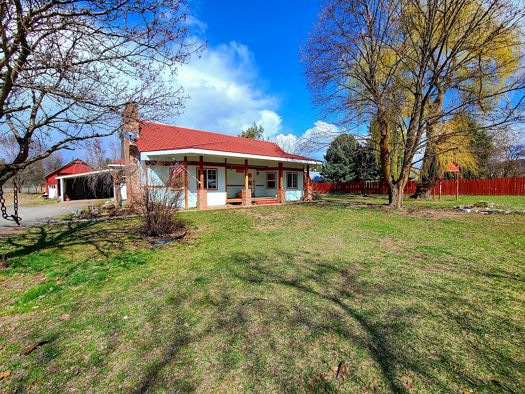 Don't pass by this multi level 5 bed/3bath home, it is much larger than it appears, it has nearly 3000 sq ft across three floors and is situated nicely on 1 acre in the city limits. This home features a main floor primary with a sitting room, nursery, or office and an en-suite, a large country kitchen with granite tile counters and tons of storage with a counter height island and french doors to the side porch and sits next to an amazing vaulted dining room. There is a large charming family room off the front entrance with huge brick fireplace and mantel waiting for your Christmas stockings. The property features a massive barn, chicken coop, garden area with a mature horseradish plant and a small orchard with (cherry, apple, pear, black berry, raspberry, and grape vine
