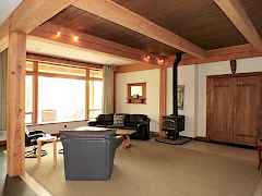 Custom timber-frame home w/tall ceilings and exposed beams. Open floor plan w/an easy access kitchen & pantry, cherry wood cabinets, marble tile, propane stove and large island. The en-suite bedroom offers soak-er tub, duel showers & sinks and the 2nd bedroom adjoins the hallway bath. There is also an office or alternate bedroom w/attractive barn-door and a nice room upstairs w/wood flooring and glass sliders. The doors are hand selected Thai-mahogany, the floors are radiant heated, walls are Insulated concrete-form construction to minimize noise and temps and there is also a wood stove to keep you comfy. Sold prior to listing.