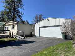 Move-In ready, very well maintained manufactured home on large lot. Brand new carpets installed in bedrooms, new floors in primary bathroom and a new stove in kitchen. Large detached 2 car garage/shop, RV/boat carport in back and a shed. Large backyard with lots of options and space for more parking from alleyway.