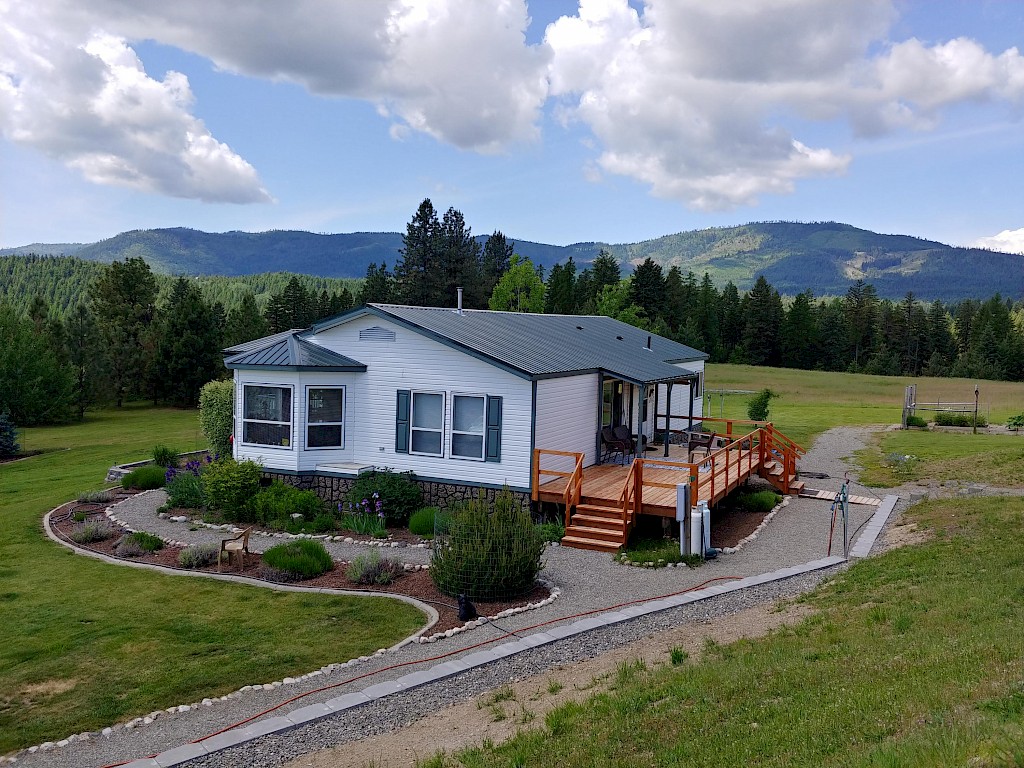 Commanding 360 degree Mountain Top Views40 acres of PURE BEAUTY! Easy access to this Canadian Built Moduline home. New Metal roof and New deck add to this well built home. Spacious kitchen with a large breakfast nook for enjoying the views. Wonderful master suite. The home has 2 bedrooms plus a large office and second bath. Pellet stove is placed to enjoy from the living and dining room. Huge 2400 sf garage/shop, RV parking, with 1/2 bath and partial kitchen and plenty of storage, the concrete patio allows you to enjoy more of the views. Lots of pasture and timber for your privacy. Fenced garden and extra out buildings.. It's all Here, even a back up generator.